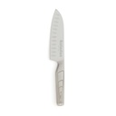 Dit Santoku mes is ideaal voor het snijden van vlees en grotere groenten of het hakken van kruiden. Het stevige handvat van pakkahout is ergonomisch ontworpen, waardoor het mes gemakkelijk en comfortabel in gebruik is. Dit betekent dat u lang met het mes kunt werken zonder uw hand te vermoeien. Het lemmet heeft een ongelooflijk harde kern van VG10 staal dat gegoten is in 67 lagen staal. Het resultaat is een duurzaam lemmet met een ongelooflijke scherpte en een buitengewoon snijvermogen.