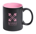 Gekleurde keramische mok met witte binnenkant. Met speciale coating geschikt voor gravure. Het gegraveerde logo wordt dezelfde kleur als de binnenkant van de mok. Geleverd in geschenkverpakking. Inhoud: 350 ml.