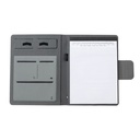 A4-formaat, 300D RPET polyester documentenmap met ingebouwde magnetische draadloze snellader (10W), 5000 mAh powerbank met USB-oplaadpoort, opvouwbare mobiele houder en notitieblok (20 gelinieerde vellen)