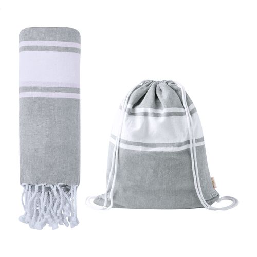 Tweekleurige pareo-strandhanddoek van gerecycled katoen met bijpassende draagtas met trekkoord