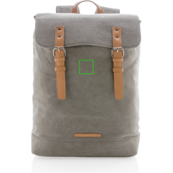 Neem al je essentials mee voor een casual reis in deze duurzame canvas rugzak. Het model is voorzien van een gevoerd gedeelte voor uw laptop tot 15,6". Topsluiting met twee kunstlederen magnetische gespen. PVC-vrij.