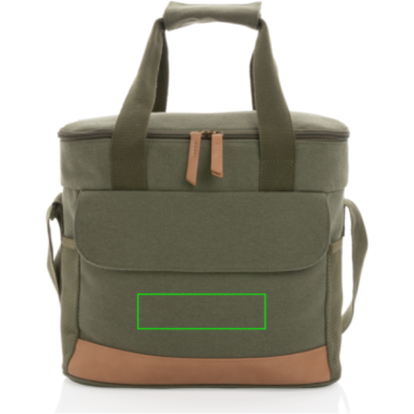 Stop je favoriete eten of drinken in deze chique koeltas! Deze prachtige 16oz. grote koeltas van gerecycled canvas kan tot 20 blikjes bevatten. Met 2 mesh zijvakken en 1 voorvak voor extra opbergruimte. Met mooie PU details. De AWARE™ tracer die het echte gebruik van gerecycled canvas valideert. 2% van de opbrengst van elk verkocht Impact-product wordt gedoneerd aan Water.org. Samenstelling 60% gerecycled katoen en 40% gerecycled polyester. Voering in PEVA.