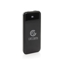 20.000 mAh powerbank met USB C input/output poort en twee extra USB A-poorten. Deze powerbank kan drie apparaten tegelijkertijd opladen. De behuizing is gemaakt van RCS-gecertificeerd gerecycled ABS-plastic. RCS (Recycled Claim Standard) is een norm om het gerecyclede gehalte van een product door de hele toeleveringsketen te verifiëren. Totaal gerecycled gehalte: 12% op basis van het totale productgewicht. Wanneer de powerbank volledig is opgeladen, biedt hij voldoende energie om je mobiele telefoon tot acht keer toe op te laden. De powerbank bevat een duurzame grade A 20.000 mAh lithium-polymeerbatterij. De stroomindicatoren geven het resterende energieniveau aan, zodat je altijd weet wanneer je moet opladen. Type-C Input: 5V/2.4A; USB A-output: 5V/2.4A, Type-C output: 5V/2A. Het artikel en de accessoires zijn PVC-vrij. Inclusief RCS-gecertificeerde gerecyclede TPE-oplaadkabel. Verpakt in FSC® mix verpakkin