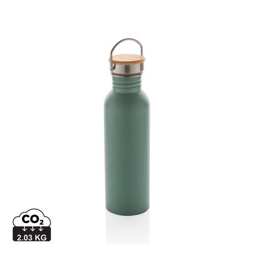 Een drinkfles die mooi is door zijn eenvoud. Deze moderne enkelwandige roestvrijstalen fles is voorzien van een roestvrijstalen deksel afgewerkt met prachtig bamboe. Met een roestvrijstalen handgreep voor gemakkelijk dragen. Capaciteit 710 ml. BPA-vrij. Met de hand afwassen. duurzaam relatiegeschenk promotie bedrukken logo merchandise