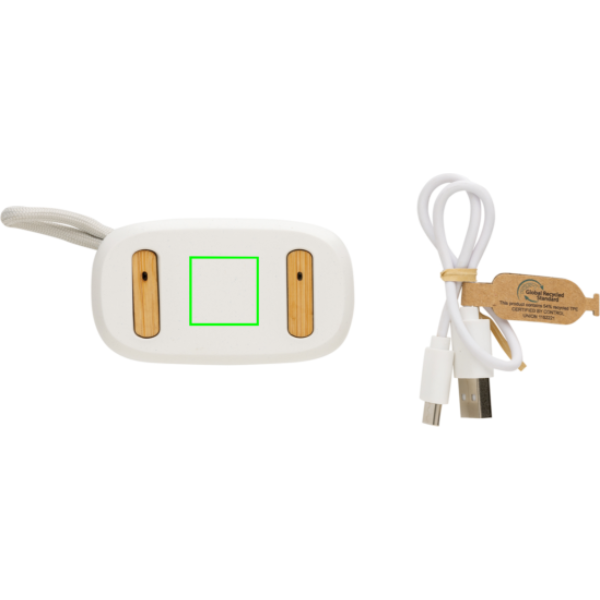 Next generation FSC® 100% Bamboo draadloze oordopjes in RCS gerecyclede ABS oplaadcassette. De oordopjes en het oplaadetui zijn gemaakt van RCS (Recycled Claim Standard) gecertificeerd gerecycled ABS. Totaal gerecycled materiaal: 58% op basis van het totale gewicht van het item. RCS-certificering zorgt voor een volledig gecertificeerde toeleveringsketen van de gerecyclede materialen. De perfect passende oordopjes hebben een 40 mAh batterij en zijn binnen 1 uur weer op te laden in de 400 mAh oplaadcassette. Met automatische koppelingsfunctie, dus eenvoudig te koppelen met uw mobiele apparaat. Speelduur op gemiddeld volume ongeveer 5 uur. Met BT 5.3 voor een optimale verbinding. Werkafstand tot 10 meter. Met pick-up en microfoon. Inclusief 3 maten siliconen oordopjes. Inclusief GRS gecertificeerde gerecyclede TPE laadkabel. Verpakt in FSC® mix kraft verpakking. Artikel en accessoires 100% PVC-vrij.
