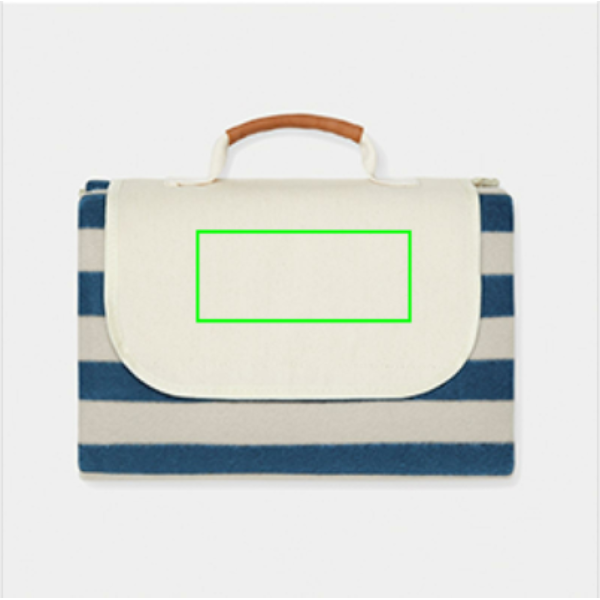 Picknickdeken van zacht fleece met katoencanvas en details van imitatieleer. Het fleecemateriaal is gemaakt van GRS-gecertificeerd rPET. De GRS-certificering garandeert een volledig gecertificeerde toeleveringsketen van de gerecyclede materialen. De achterkant is gemaakt van PEVA, dat waterafstotend is. Door de slimme constructie is de deken gemakkelijk op te vouwen en mee te nemen. Totaal gerecycled materiaal: 51% op basis van het totale gewicht van het item.